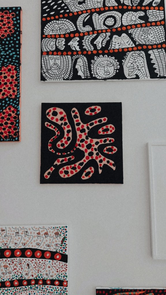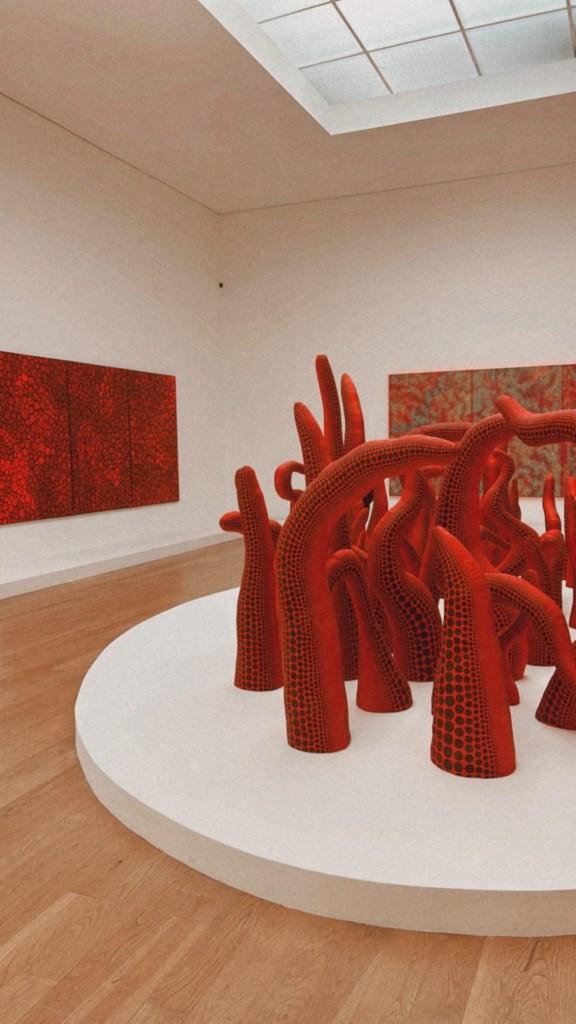 my notes: Kusama’s art captures the eye, and boggles the mind – her works are feminine, yet phallic; feminist at heart, revolutionary in act – it appeals to those who already question these things and confuse those who look past the issues presented. It feels like being part of a community, to instantly get her works; understanding and being understood simultaneously.