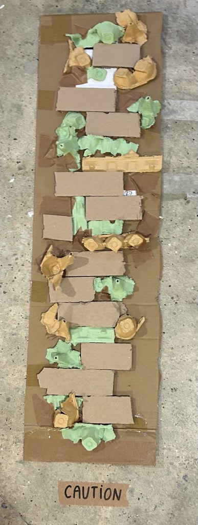 “i kept bumping my toes but the peaks were low so sometimes i stepped over them. There were tiles or stepping stones I think? but they were small” – ian