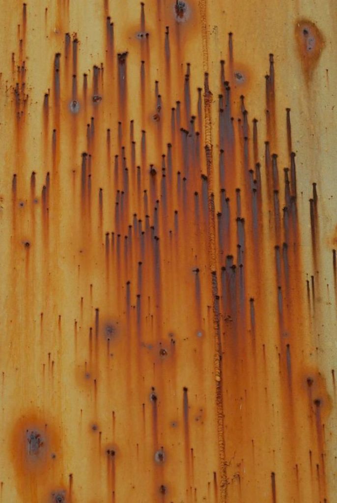 rust as a material, seeing it as a process of new composition, rather than break-down or decay — the aspect of rust ‘leaking’ intrigues me, also — how can I capture the leaking of rust?