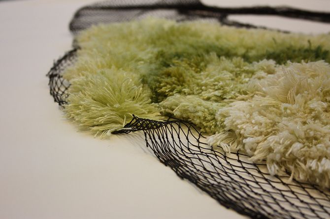 To capture the duality, she used a old fishing net as the base for the rug. The waste can be reused in this way and have an esthetically and practical use.