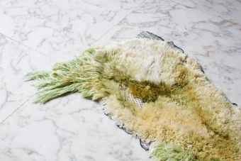 SEA ME is a rug made of sea algae yarn, knotted by hand in an old fishing net. Capturing the contrast between the polluting plastic waste issues and the beautiful things the sea has to offer.